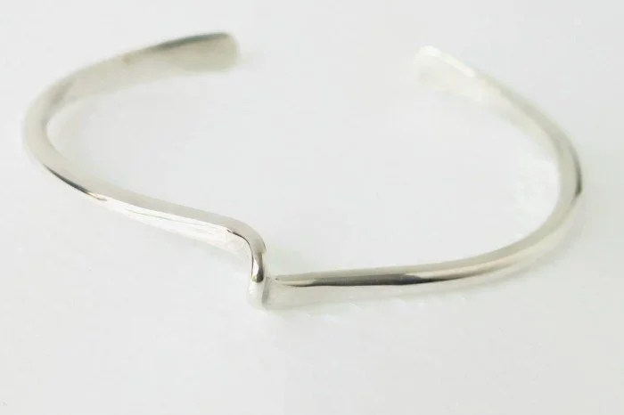This is a a beautifully simple hand forged sterling silver cuff bracelet. This bracelet is just a little twist on your wrist and is elegant--will go great with your bangles!